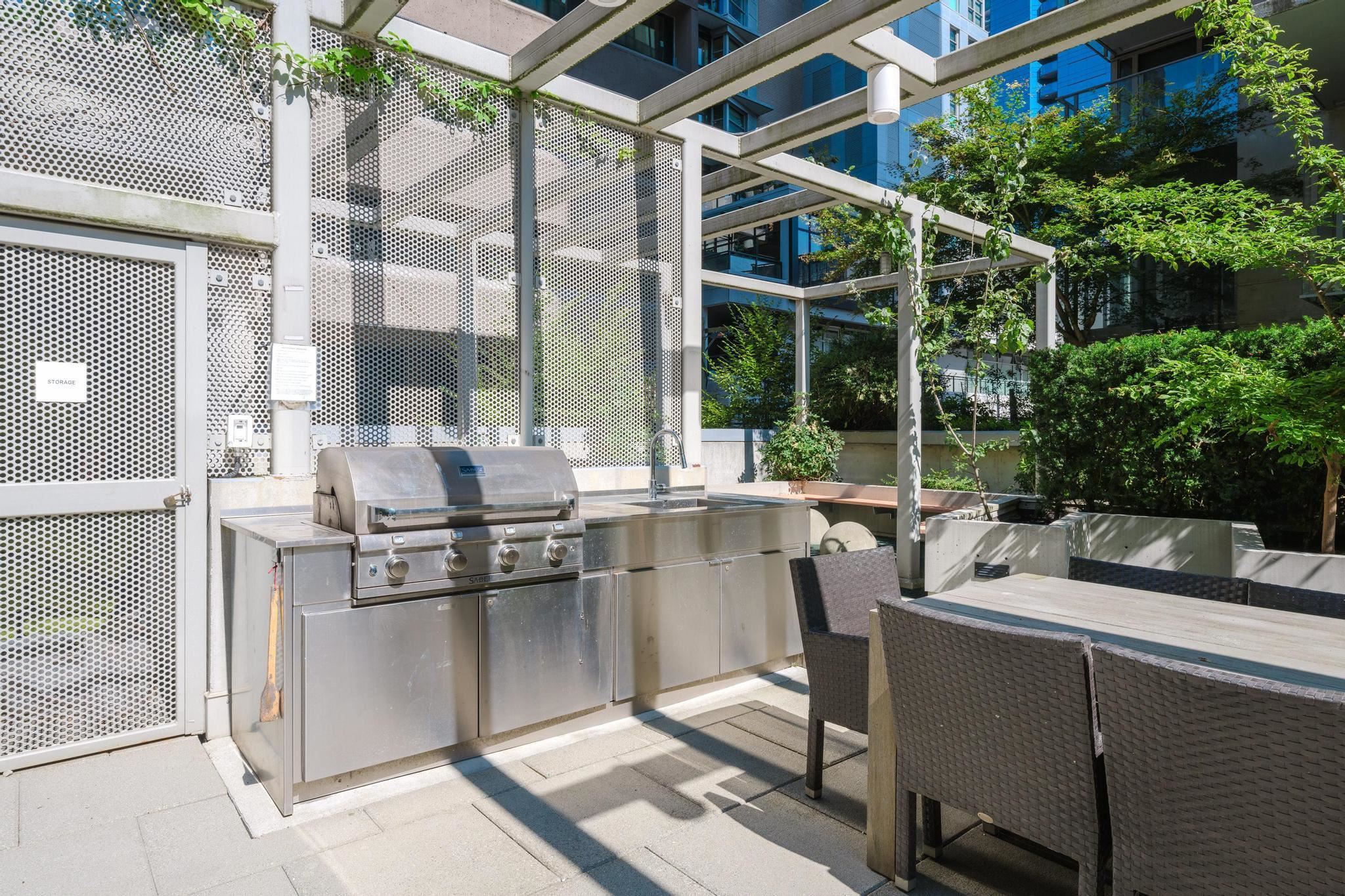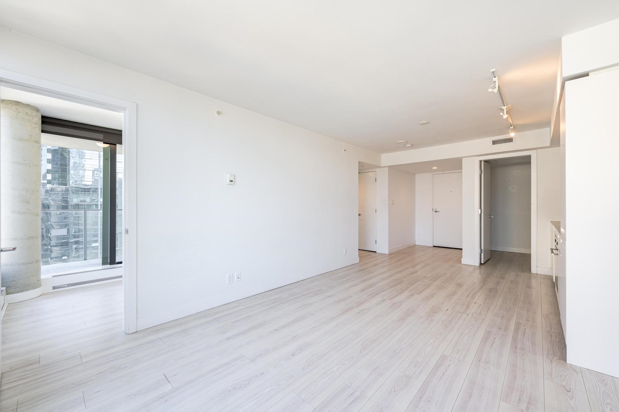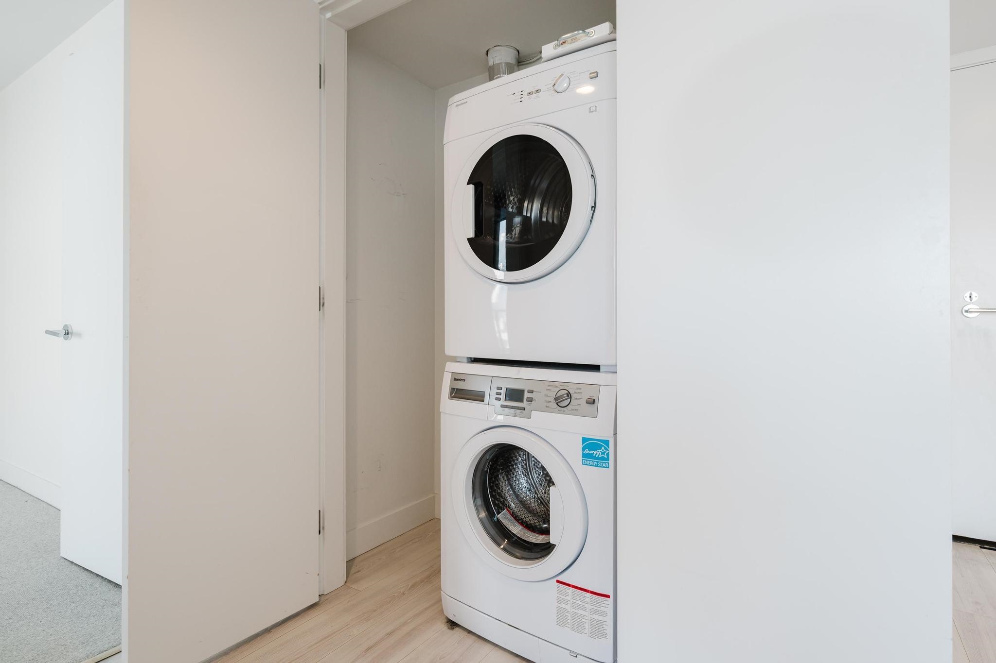 Welcome to ADDITION ? This spacious 1-bedroom + den + flex corner suite offers 653 sqft of stylish living space. Enjoy beautiful laminate floors, an energy-efficient climate control system for heating and cooling, a walk-in closet, and floor-to-ceiling windows that flood the unit with natural light. The gourmet kitchen boasts stainless steel countertops and appliances, a glass cooktop, a wall-mounted faucet, and custom Italian cabinetry. Building amenities include a fitness room, party/games room, outdoor patio with gas BBQ and fire pit, and garden plots. Located in the heart of Downtown Vancouver, you're just steps away from a variety of dining options, shopping, entertainment, and everything the city has to offer!