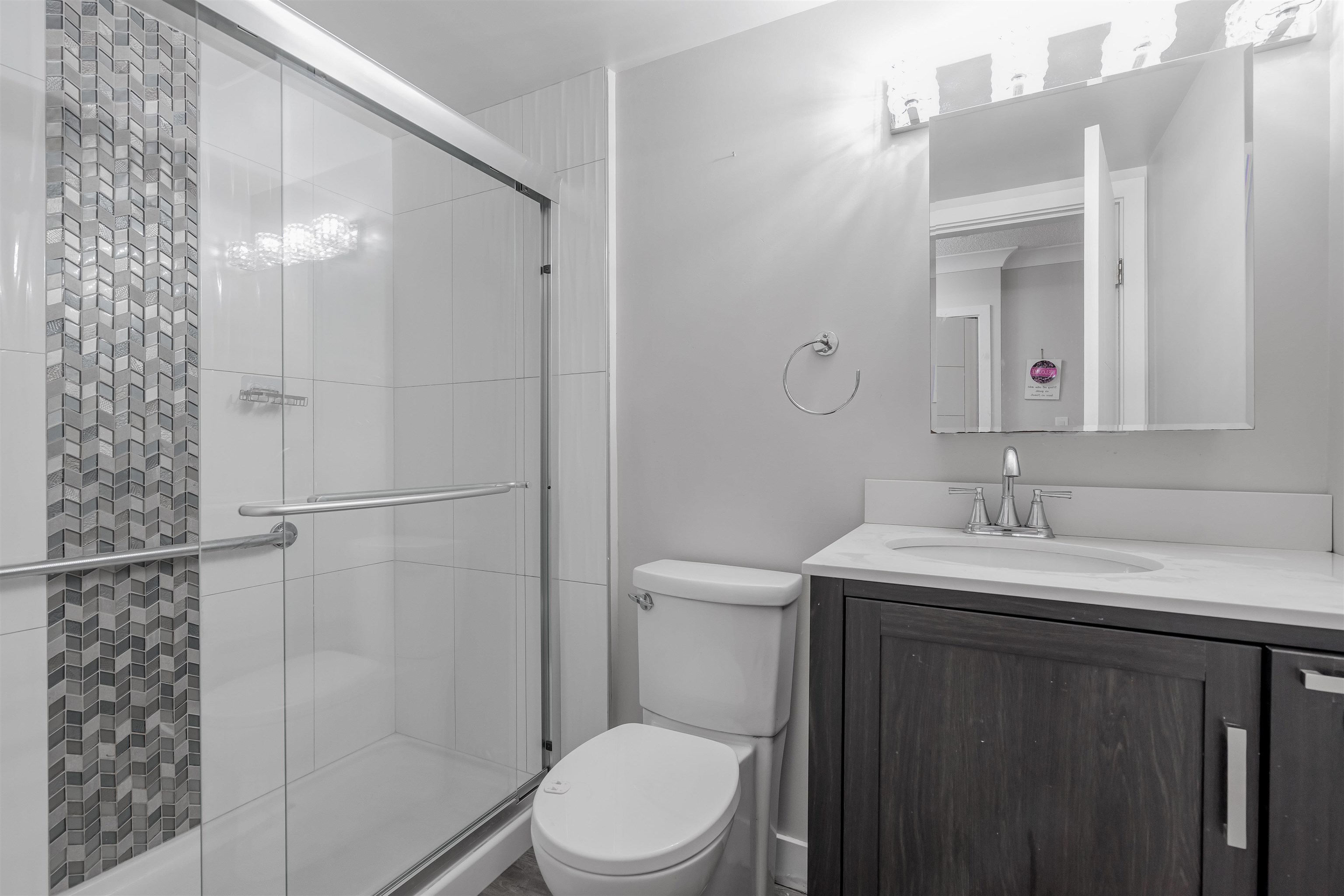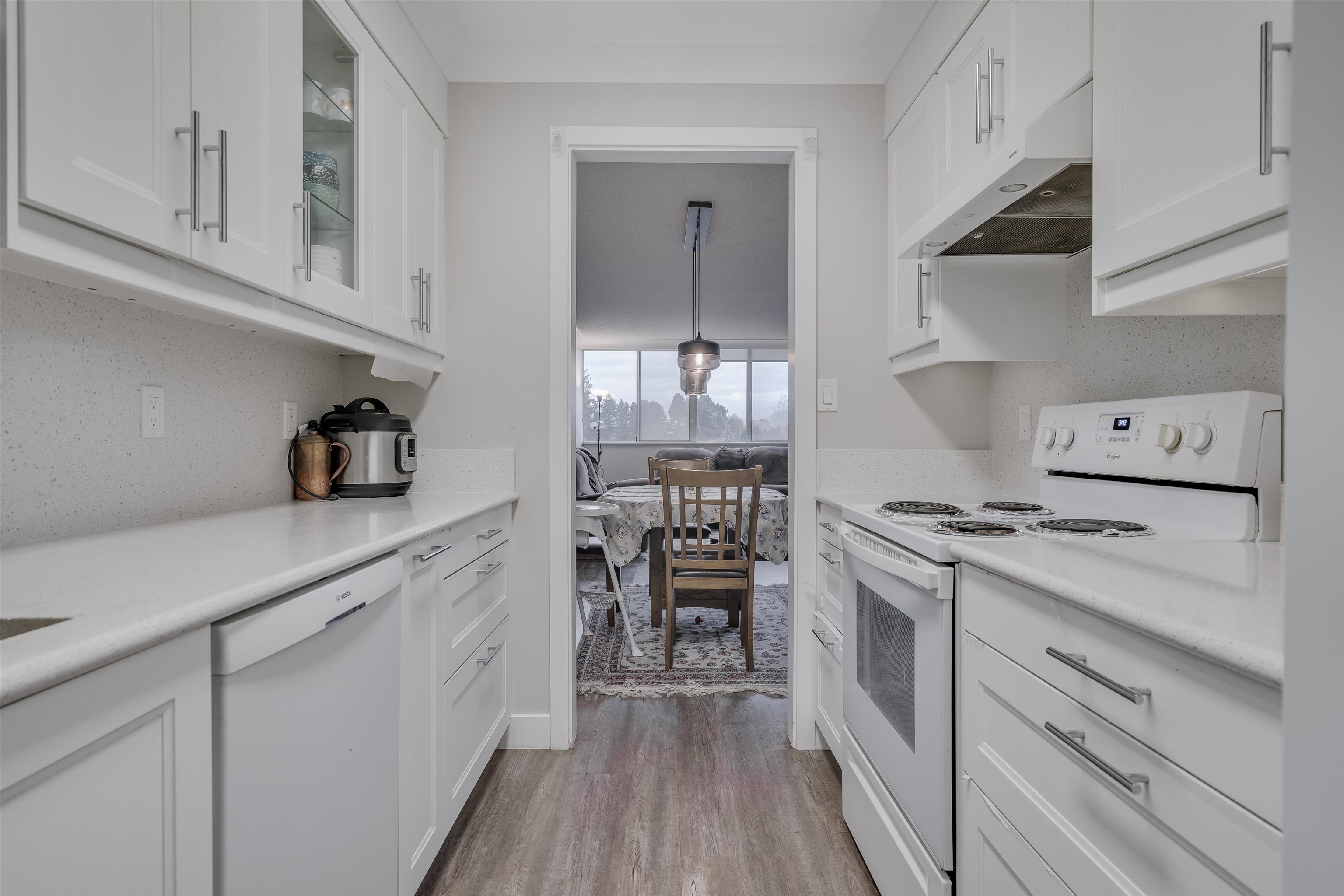 FULLY UPDATED 2 Bedroom & 2 Bathroom and LAUNDRY room in 1,144sq.ft. condo in popular Kennedy Heights Tower, CONCRETE BLDG. in ANNIEVILLE, N. DELTA!! Gorgeous Mount Baker/West Van. Mountain Views, HUGE 159sq.ft. ENCLOSED balcony/solarium!! SECURITY GATE and SYSTEM in bldg., NEW KITCHEN and WHITE CABINETRY with STUNNING QUARTZ counters, BUILT-IN UNDERMOUNT lighting, Hardwood Laminate Floors, CUSTOM doors, NEW Appliances, large windows, Building updates include roof, plumbing, 2 elevators, plenty of Amenities including a dream Attached Workshop, full gym, bike room, pickleball court, Social Room w/activities, library, RV Parking with permission, Very close to schools, shopping, dining, senior center, and transportation!